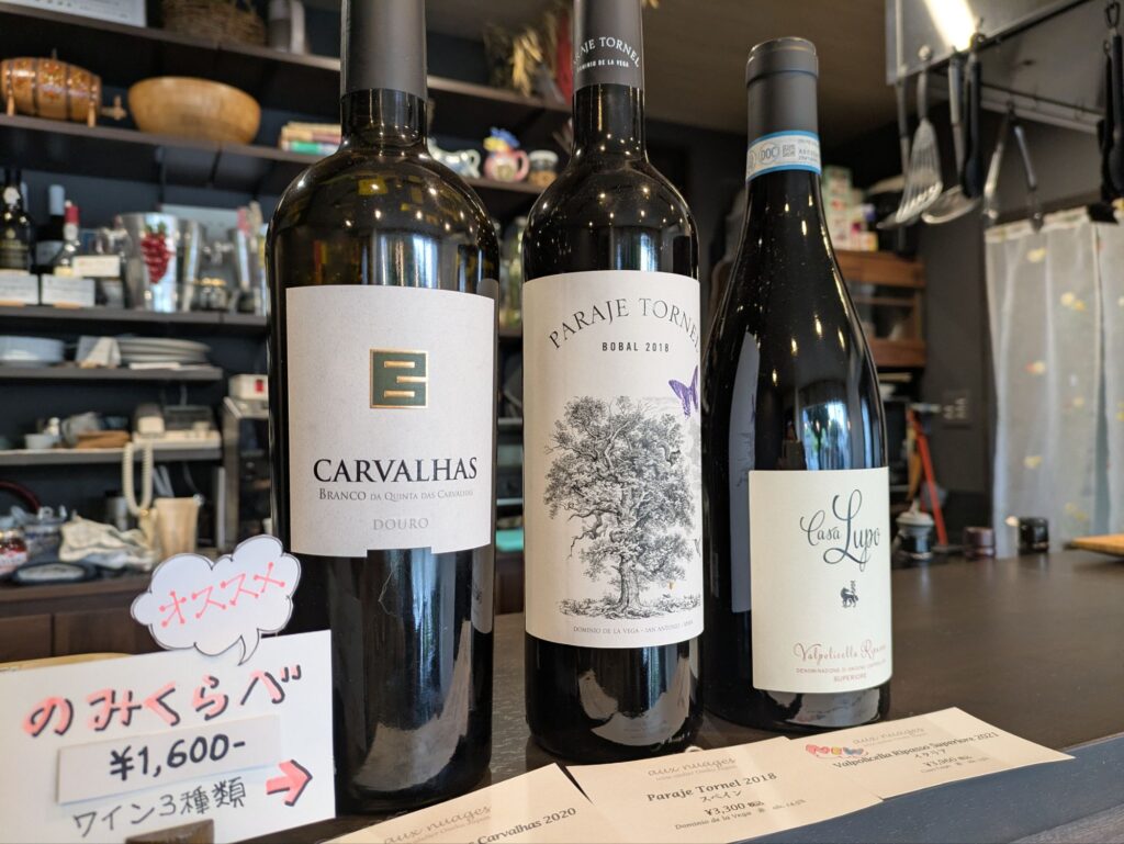 今日からの飲み比べ3種類のご紹介です。今回はポルトガルの白、スペインの赤、イタリアの赤をご用意しました。もちろん、個別にグラスでもご注文いただけます。