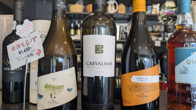 3月後半の三種飲み比べは、香り豊かな白2本と珍しい品種メレンザオの赤です。¥1,600で提供しており...